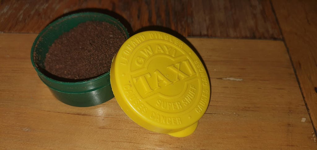 Taxi Green is a robust, high-nicotine snuff with a complex blend of menthol, ammonia, and earthy tobacco notes. The grind is coarse and moist, making it easy to take. The product delivers a significant burn and a slow, building nicotine release, with a strong, pungent aroma and a quality presentation.